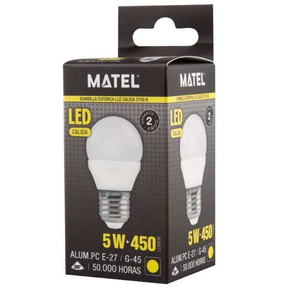 BOMBETA LED ESFÈRICA 5W. E-27 LLUM CÀLIDA 2700K.